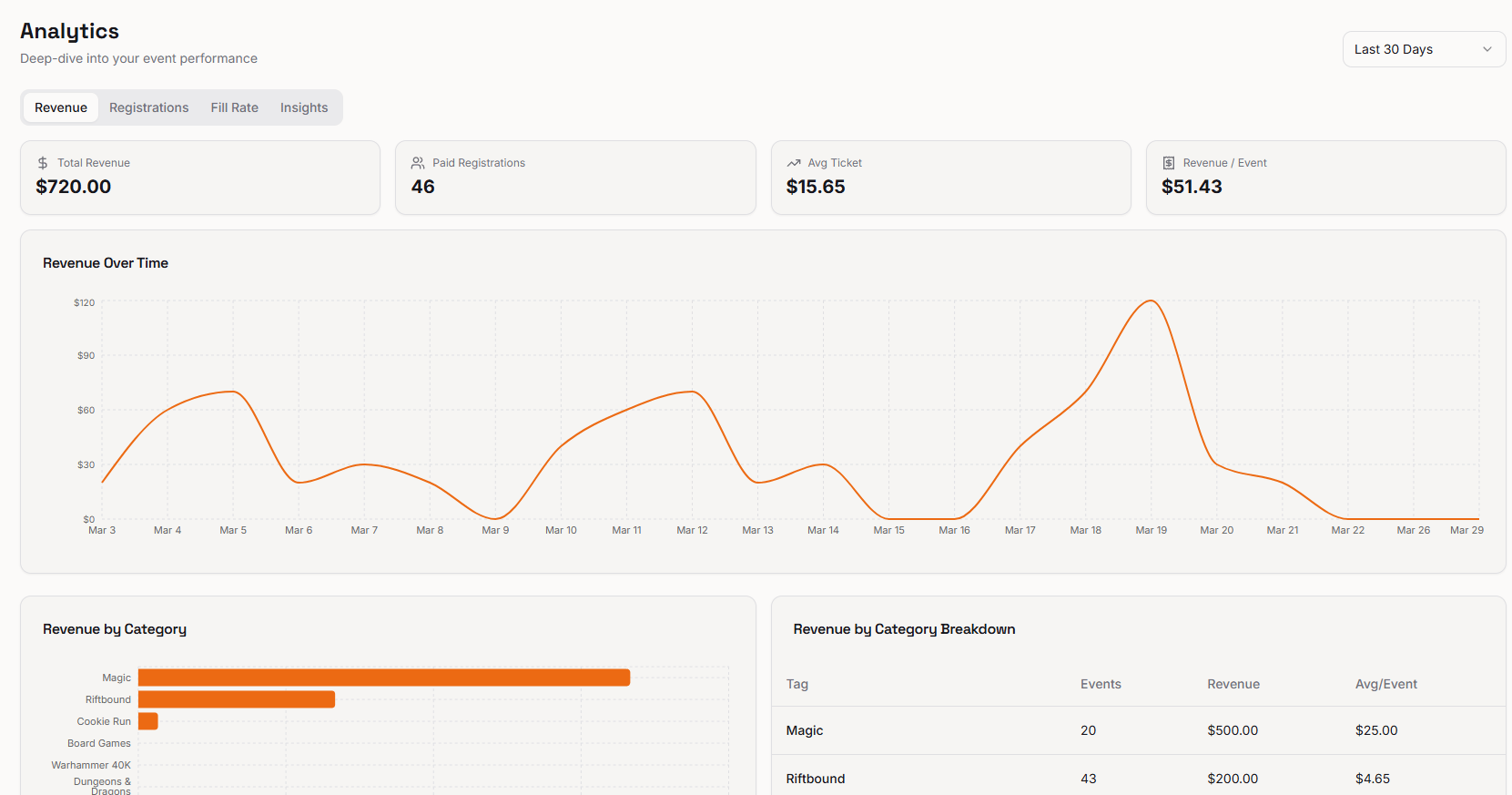 You run a tabletop game store, so you know the drill: juggling Friday Night Magic signups, tracking who's registered for the next league season, managing table reservations for Commander night, and somehow making it all work either with an app that’s built for bike rentals and yoga studios or ad hoc spreadsheets, or both!